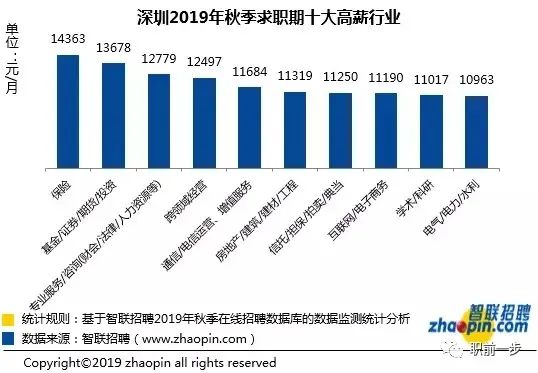 如此一来,求职路径就十分清晰。你只需要在地图上找到一个合适的小区,即行业;在小区中找到一栋最好的建筑,即公司;在建筑里从一层的某个片区出发,努力的向二层、三层攀爬即可,即挑选职业或岗位后努力发展,便可实现“钱多、事少、离家近”的求职目标。无论你现在是什么专业,在高考填志愿时,你或父母一定被建议过“金融”、“互联网”、“医疗”“建筑”等等相关方面的志愿选项。排除真正的热爱,大家之所以选择这样的行业,很大一部分原因是因为这些行业都有一个显性特征,即收入高于其他行业水平。事实也确实如此,智联招聘《2019年秋季深圳雇主需求与白领人才供给报告》显示,2019年秋季求职十大高薪行业基本上都集中在了金融、计算机、通讯等相关行业。
