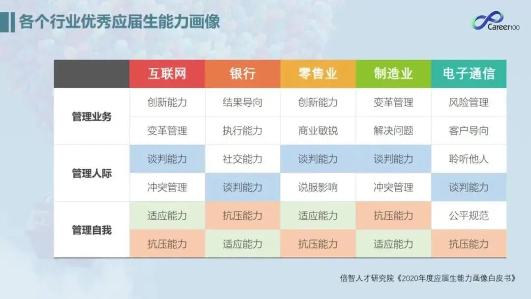 倍智人才研究院抽选在不同行业任职的2020年优秀应届生进行跟踪和回访,研究制定出一张能力画像。其中,对这三项能力要求非常突出:谈判能力、适应能力及抗压能力。 面试官在面试时,不仅会考察候选人的硬技能,更会去考察候选人的这三项能力。 学习能力 关键词:自主、行动、反思 绩点、证书作为体现学习能力的一部分内容,很重要。但对于HR而言,这些知识多为被输入型和非实践性的。更多代表的是应聘者的考试能力、对知识的理解与记忆。 与其相比,学习、知识迁移、反思提炼更能够成为是学习能力体现的重点。这就要求各位同学们在工作/实习的经历中,思考自己是否拥有自我驱动力,并且愿意主动地学习新的工作。且及时复盘工作,寻求反馈。 沟通能力 关键词:文书、倾听、冲突 需要特别强调的是,沟通能力不等于表达能力。一方面,沟通是双向的过程,表达者需要确认自己所表达的内容是否被接受者准确理解。另一方面,沟通不仅是口头沟通,在职场中还会涉及到文书沟通等内容。如在邮件沟通时,突出重点、表达意愿和目的、实际讨论工作内容会让人更能接受。如何突出重点、言简意赅、不带情绪化地表达清楚内容,也是职场新人必须要学习的一门课。 在和其他工作人员的交往中,有几个沟通要点: 1、最好的说服是先聆听。在沟通时,倾听对方诉求很重要,共情是十分必要的; 2、让对方明白双方是同一阵线的,并不是对立面,不应相互指责; 3、对事不对人,需要有具体的数据阐释观点; 4、让对方明白任务没有圆满完成将会对双方产生什么影响; 5、不应告诉对方应当如何做,应该让对方自己表达解决方法,执行力也会更高。 职场中沟通对象、个人沟通风格不同,对沟通要求也会有差别。职场上的沟通不是聊天,更重要的是以终为始,获得双赢! 抗压能力 初入职场,各种压力扑面而来,如人际压力、工作压力、同期生带来的发展压力等。想要突破重重压力,成长为一位优秀的职场人士,需要具备这两项抗压的能力: 情绪韧性:能够控制和管理好自己的情绪 逆境复原:学着把压力转换成发展机会 事实上,在面试官心中有一把标尺,这把标尺上记刻着本单位的平均压力。招聘时考官问及“你压力最大的一次工作经历是什么”时,你给出的答案就会在标尺上被比对,以用来衡量预测你在未来工作中的抗压力。 怎样展现能力 在简历和面试中,如何萃取、展现自身能力呢?能力的萃取至关重要。 能力的萃取是指从某一事件经验中提炼出来,能够迁移到职场工作中去的能力。如面试官有可能会问及你的以往经历,如果你能从中萃取出自身优质能力,一个加分项又出现了。 在面试前你可以考虑以下问题: 1.回想一件特别有成就感的事 2.用STAR模型去描述这个事件 3.问自己“我是怎么做到的呢?” 4.提炼萃取成XX能力 5.与应聘岗位的所需能力相链接 十分重要的一点是,面试时在运用STAR模型(SITUATION背景、TASK任务、ACTION行动)讲述经历时,一定保证真实性!在“STAR”的情境、任务、行动、结果当中,面试官大概率会对“行动”这一环节进行细节追问,如任务参与程度、面临最大压力等。追问过后,如果面试官质疑其真实性,这会比“故事不那么惊艳”更糟糕。 场景一 抗压能力案例 我在人力部门实习8个月的时候,我的老板、老板的老板以及团队的另一个资深成员都跳槽去了竞争对手的公司。那时公司人手不够,给每个部门员工发工资的重任就落在我的身上。 萃取:我需要在短时间内学习许多繁琐的硬技能,几乎天天熬夜到半夜,白天还会被公司的前辈为难。当我以为快要撑不下去的时候,竟然零失误地为公司员工,发完了三个月的工资。那一刻我终于明白,“杀”不死我的,只会让我变得更加强大。 场景二 学习能力案例 6个月实习经历(赢了) VS 4年工作经历(输了) 华中区一家单位需要招聘HR,第一位候选人仅有6个月的实习经验,第二位候选人无论从工作经验、资质、背景各方面都碾压了第一位,但单位最终选择了第一位候选人。 原因在于,当考官问及“招聘流程中最重要的环节是什么?”这个问题时,第一位候选人聊起了她在实习期间,发现单位在招聘工作中存在过度重复性,总是在将一位应聘者的优点比较另一位应聘者的缺点,而没有真正抓住必要项、加分项。 这一点,就让考官看到了第一位候选人区别于其他候选人的闪光点:能够准确发现问题、提出问题、解决问题,并不断反思提炼出在招聘环节中很重要的一个节点,这样的学习能力是十分可贵的,让考官看到了她的潜力并最终录用。 线上面试tips 因为疫情,今年许多企业选择线上招聘。可以预见,今后线上面试这也会成为招聘一种常规化考虑的方式。以下有一些贴心的面试小技巧供你参考。 ①一个人的舞台:一定要保持视频画面的整洁干净,这是面试官对你的第一印象。 ②设备测试:开始面试前,一定要先调试好你的摄像头及麦克风,确保网络的稳定性。 ③开拍注意:把摄像头想象成面试官的眼睛,一定要与它有眼神接触,还要注意自己全程的精神面貌。 ④非语言表达:面试时,注意自身的肢体语言,适当的点头微笑会更加分!着装得体,不要太随意,也不要过于严肃正式。 ⑤回答提问:一定要听清楚问题后再答,注意与面试官讲话时要有逻辑且简洁明了。 ⑥万金油法则:遇到HR抛出的难题时,可以使用万金油STAR法则。